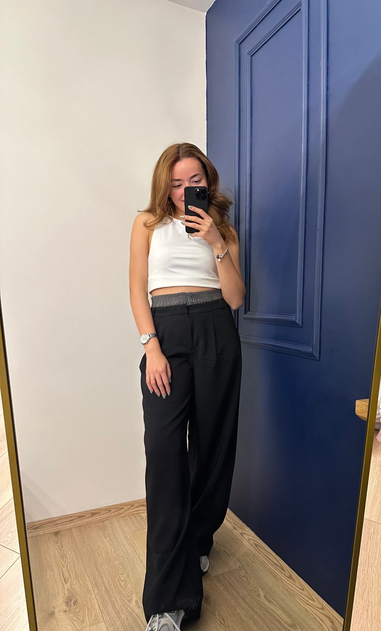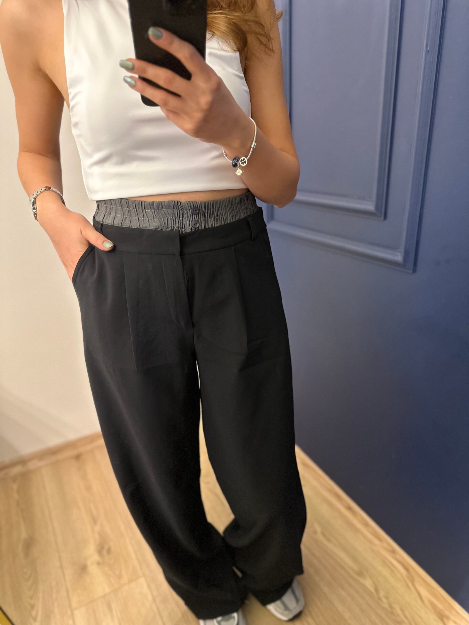 Boxer Detaylı Siyah Palazzo Kadın Pantolon